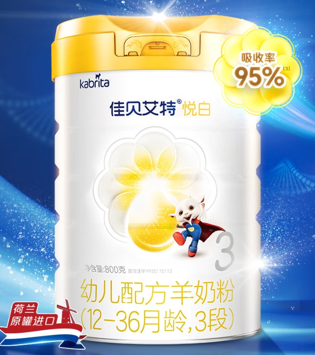 这类宝宝的肠胃较为敏感,容易对牛奶蛋白产生过敏反应。羊奶粉中的100%纯羊乳蛋白分子较小,过敏风险低,同时搭配OPO结构脂、益生菌等成分,能够减轻肠胃负担,调节肠道健康,是不错的选择。例如佳贝艾特悦白系列和蓝河春天羊都是很好的候选。